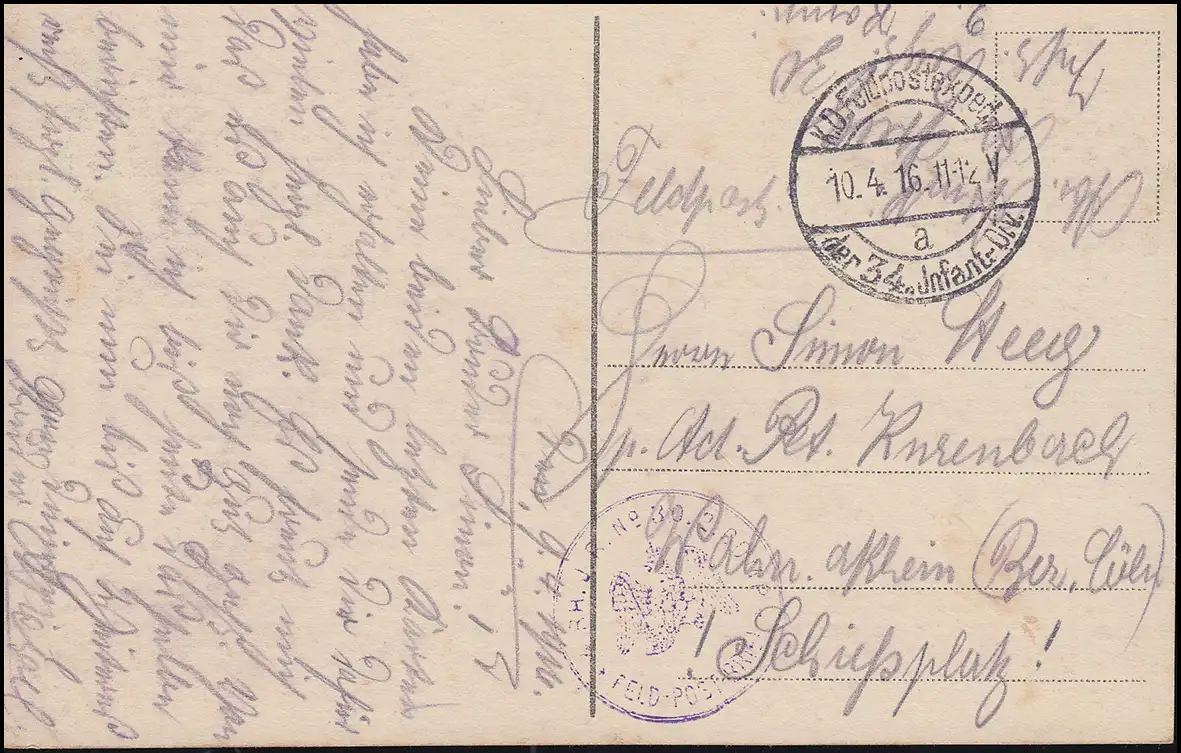 Poste de terrain RH.J.I.R. No. 30 sur les chalets de chemin de fer AK de Dannevoux, 10.4.16