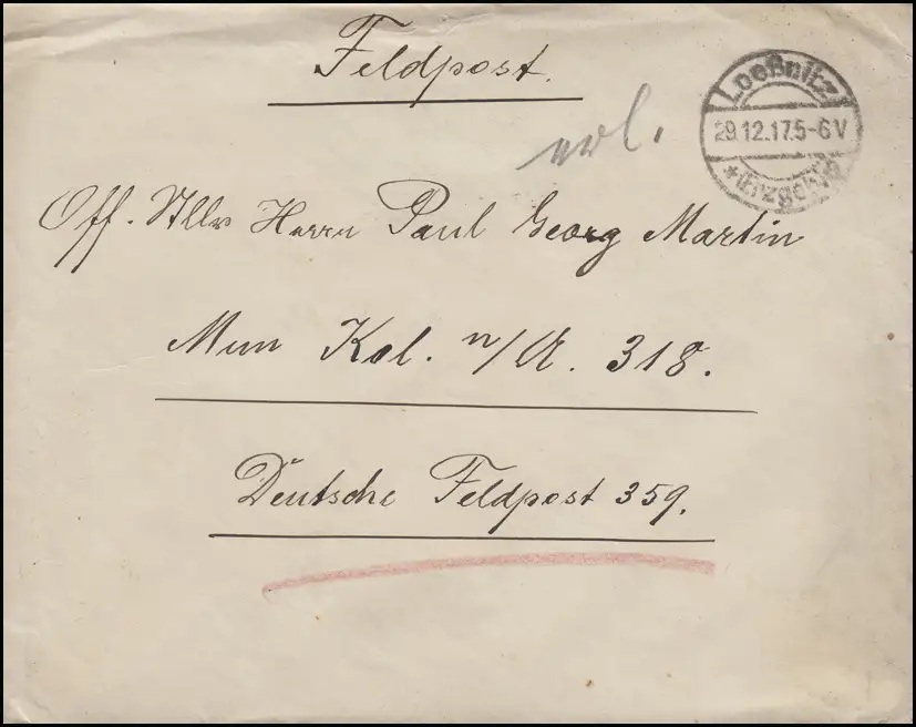 Poste de terrain à Mun. Col. 318 / Poste tarifaire 359, Ff. Martin Lößnitz/Cerzg. 29.12.75