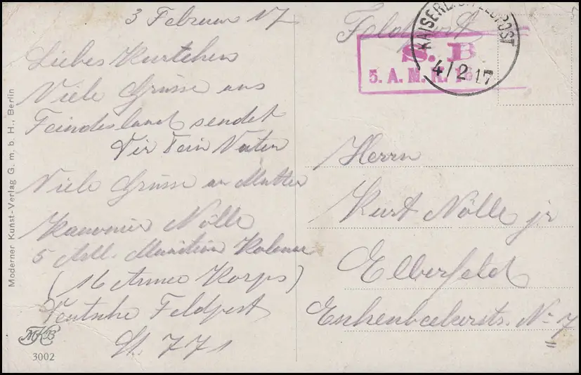 Poste de terrain avec BS 5.A.M.K. 16.AK FELDPOST 4.2.17 sur AK tableaux Trois chevaux