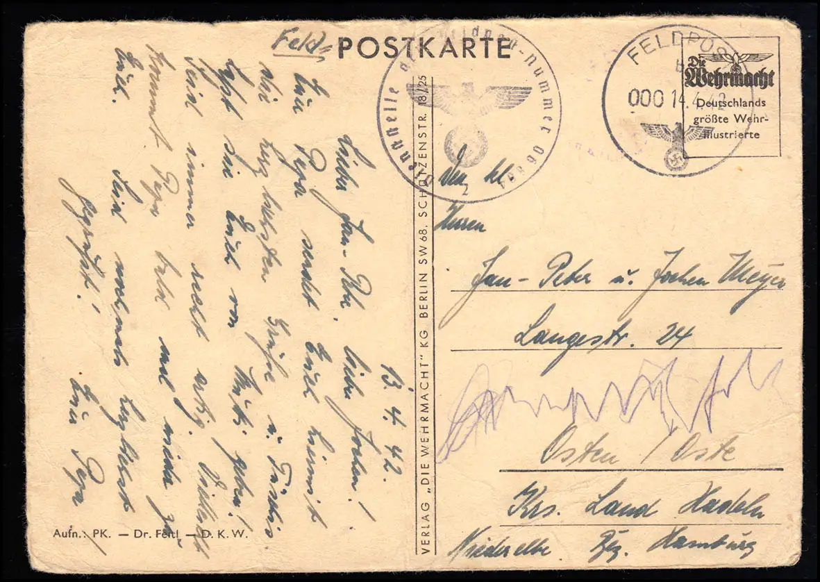 Poste de terrain avec timbre sur les chars AK, FELDPOST b 14.4.1942