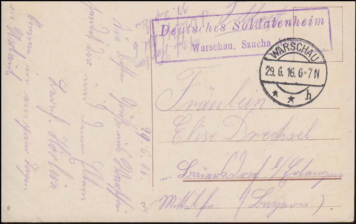 Poste de terrain de la maison militaire allemande WARSAU 29.6.1916 sur le monument AK Zygmunta