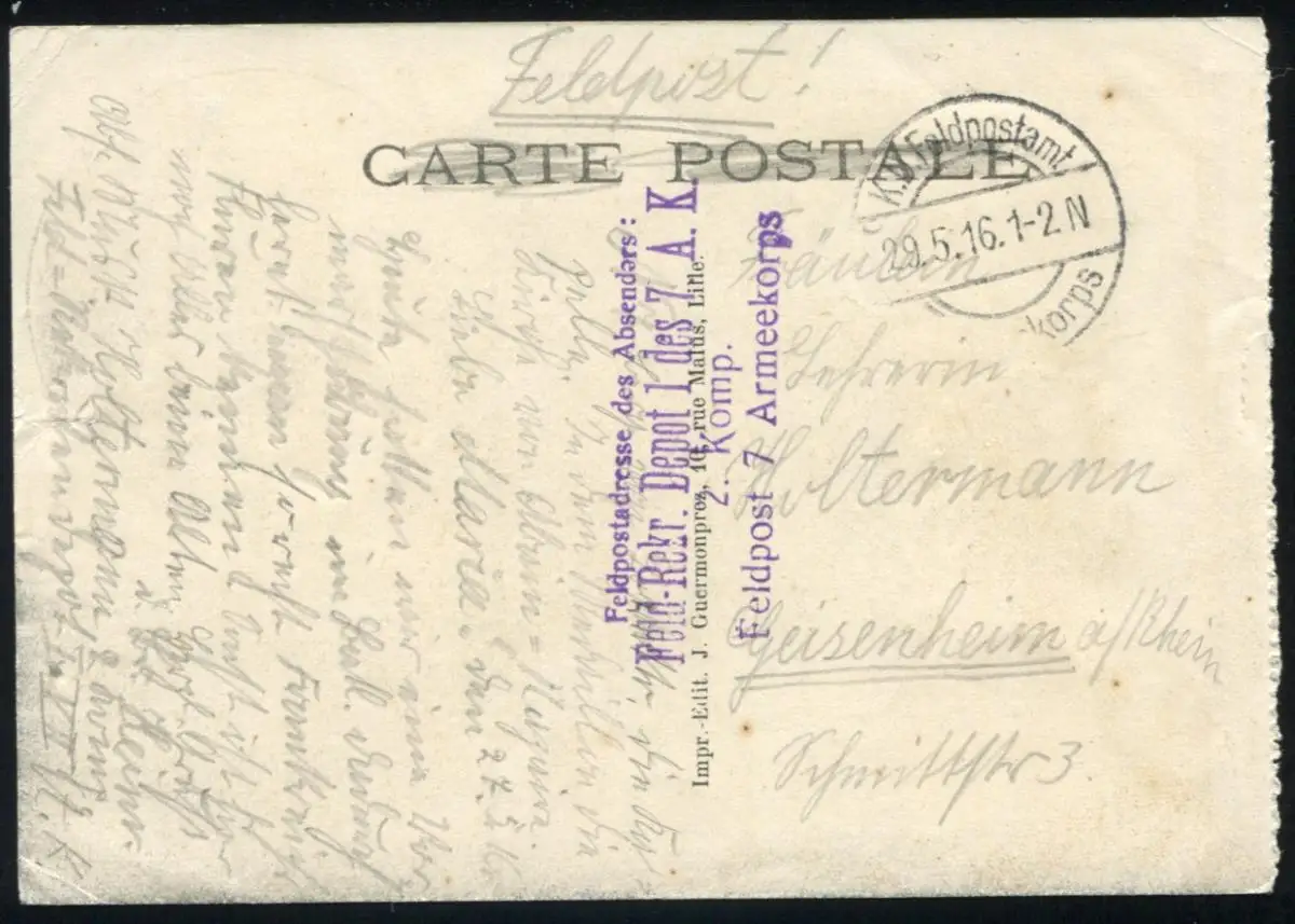 Poste de terrain recrues de champ dépôt 1 du 7e AK 29.5.16 sur Ak Mont de Lorette Chapelle