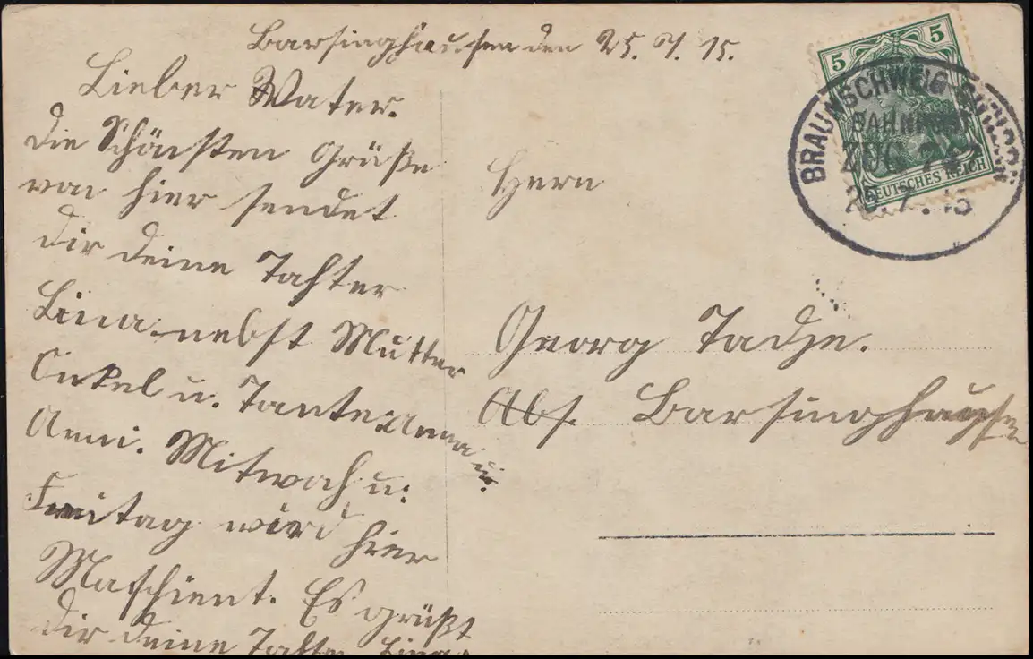 Poste ferroviaire BRAUNSCHWEIG-GIFHORN ZUG 747 - 25.7.1915 sur photo-AK image de jeune fille