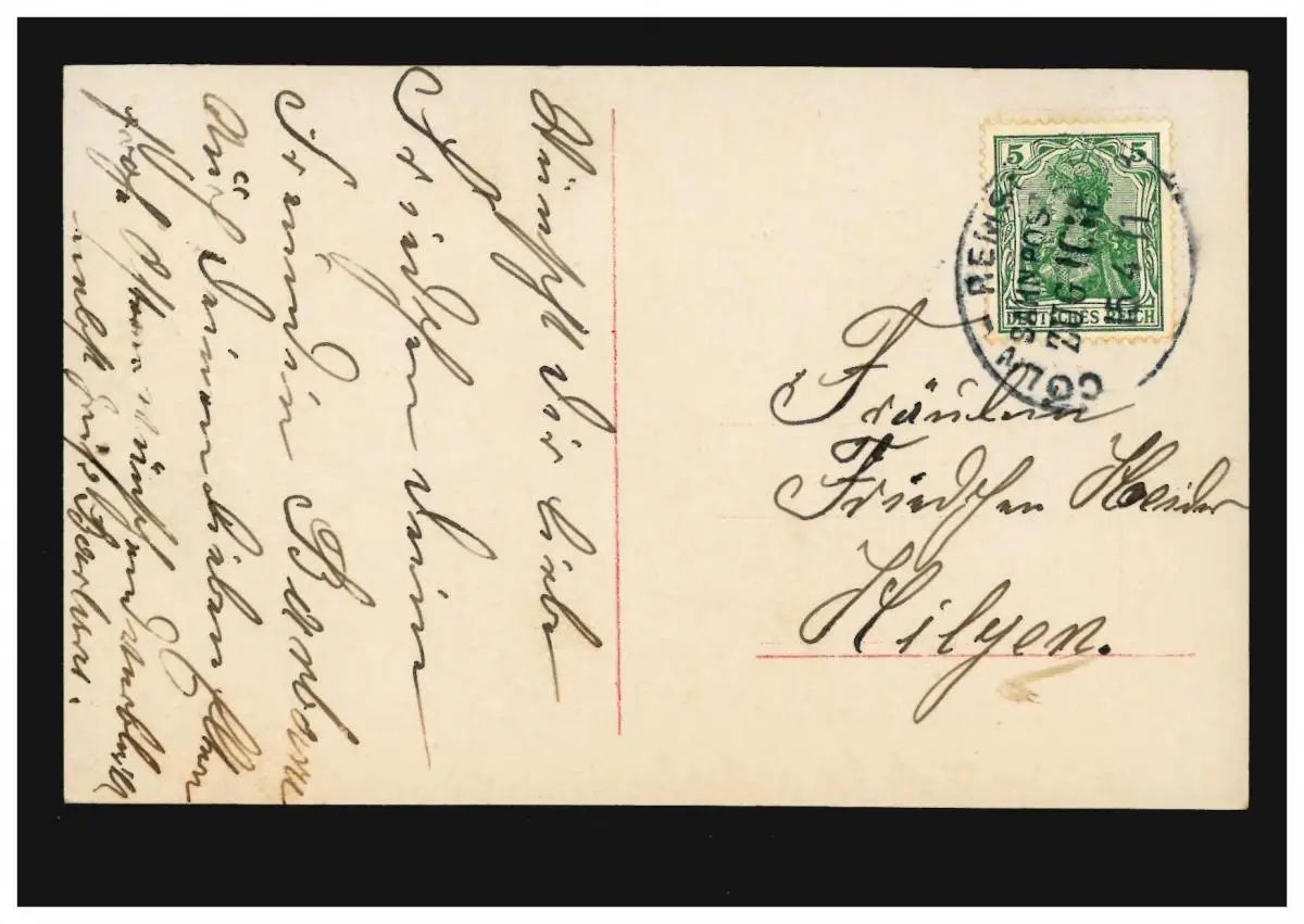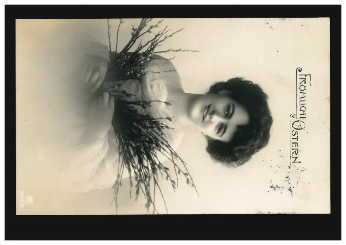 Poste ferroviaire CÖLN-REMSCHEID 15.4.1911 sur Oster-AK Femme avec chaton de pâturage