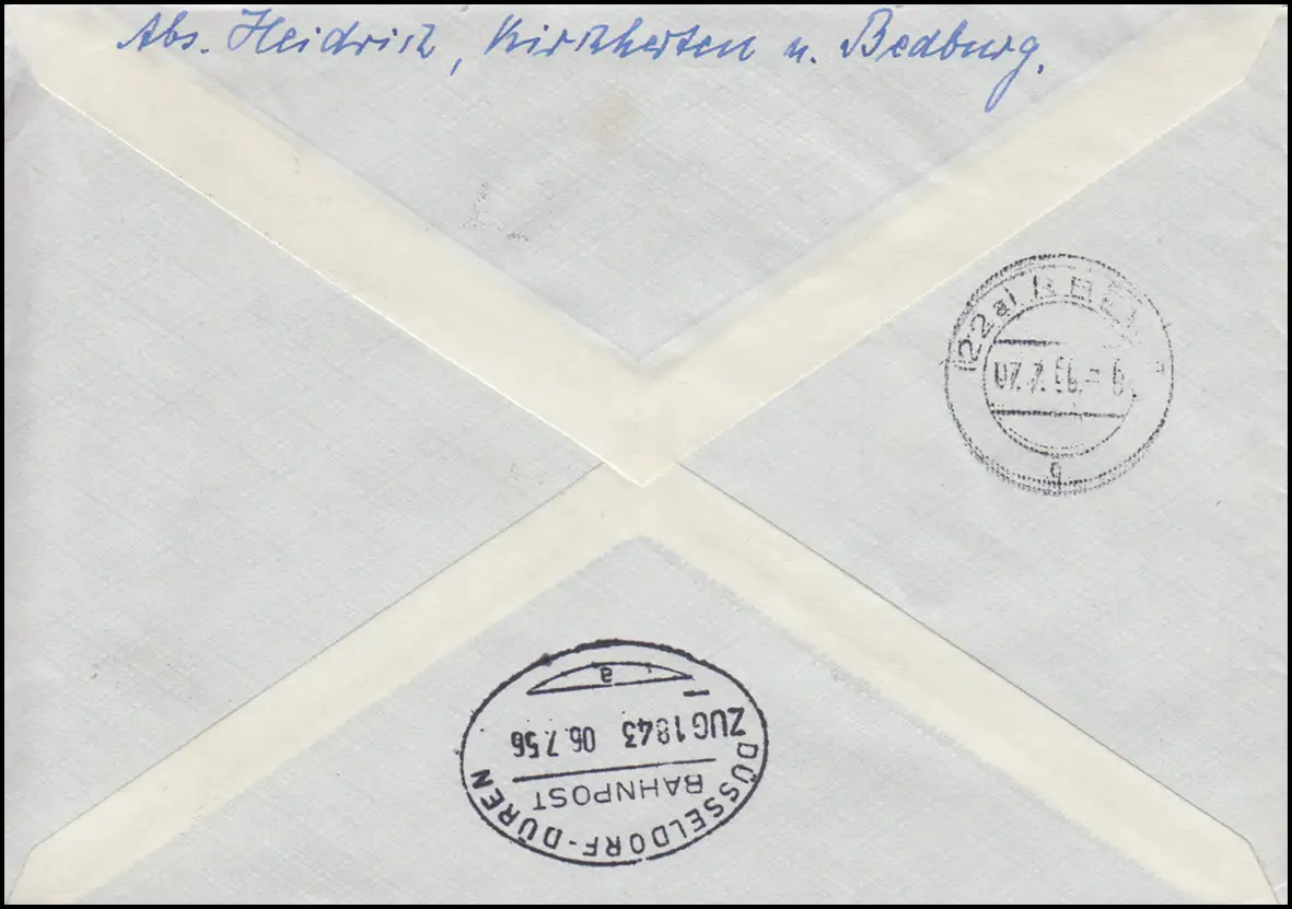 Poste ferroviaire DÜSSELDORF-DÜREN ZUG 1843 - 6.7.56 Eil-Bf. 188x MeF KIRCHHERTEN 6.7.5