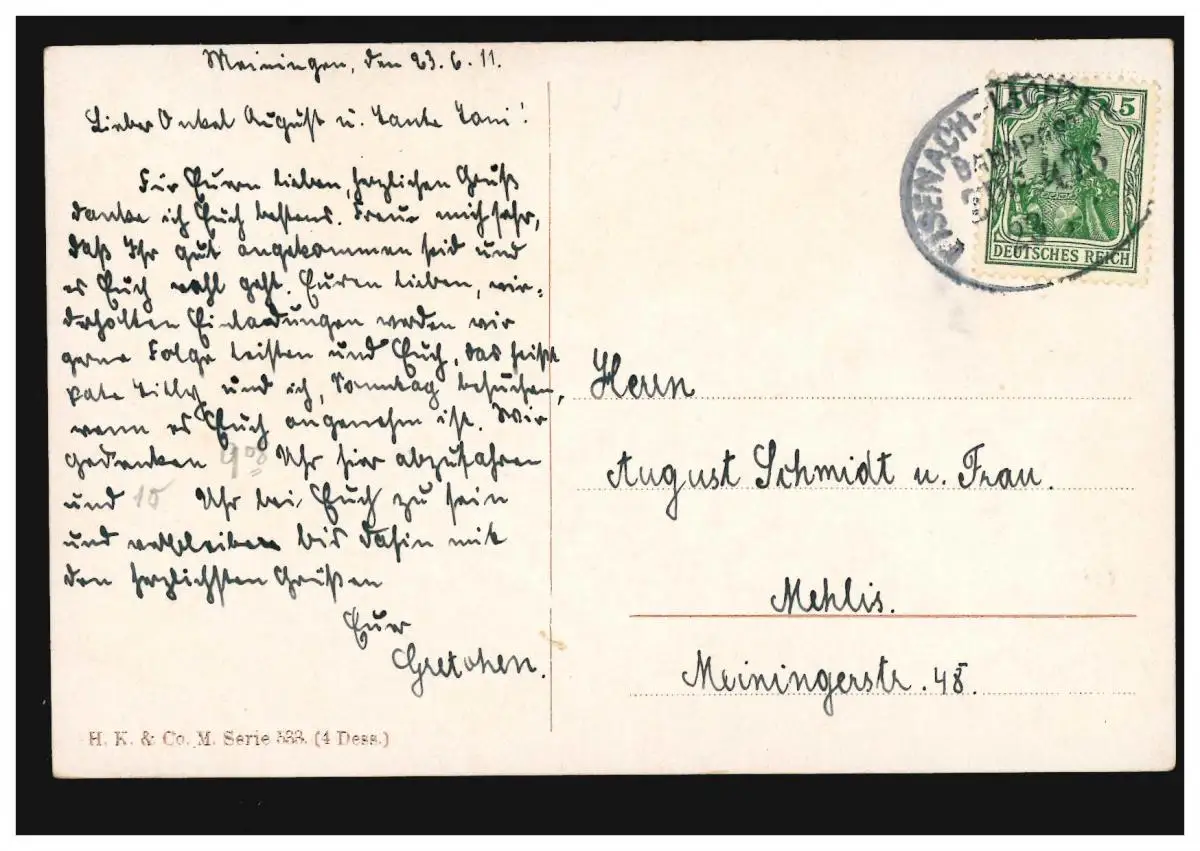 Poste ferroviaire EISENACH-LICHTENFELS ZUG 473 - 23.6.1911 sur les fleurs d'artiste-AK