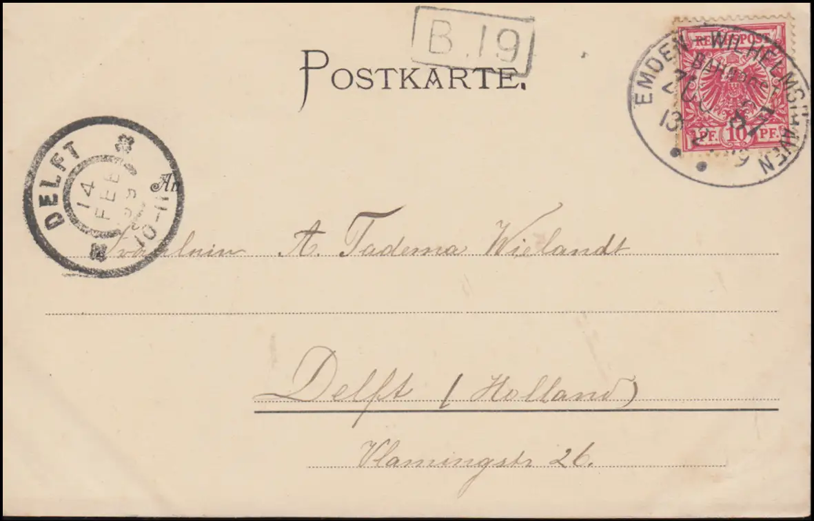 Poste ferroviaire EMDEN-WILHELMSHAVEN ZUG 87 - 13.2.1899 sur AK Gruss de Jever: Château