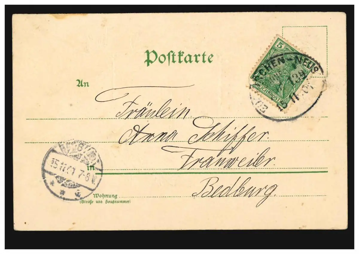 Poste ferroviaire EUKIRCHEN-NEUSS ZUG 132 - 15.11.1901 sur carte de bord Paysage