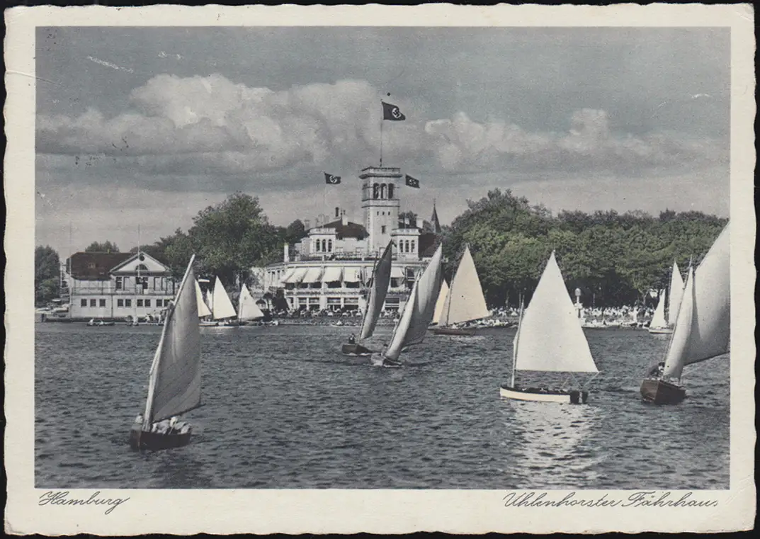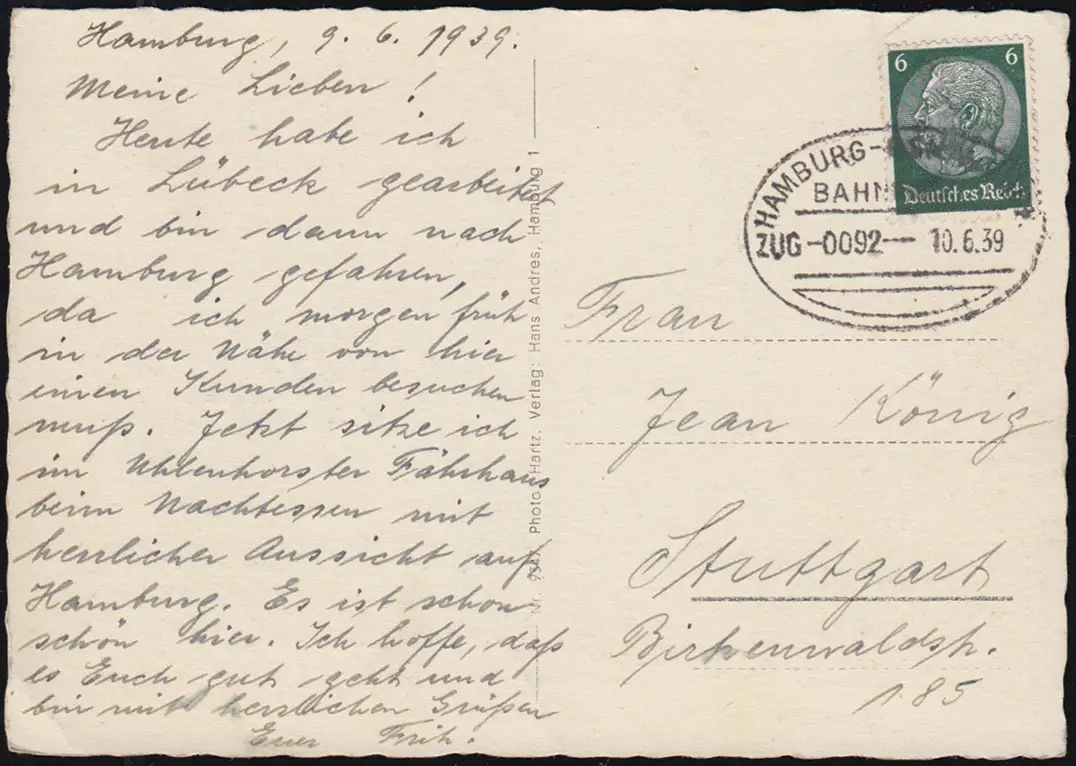 Poste ferroviaire HAMBURG-OSNABRÜCK RETARD 0092 - 10.6.39 sur AK Uhlenhorster ferry