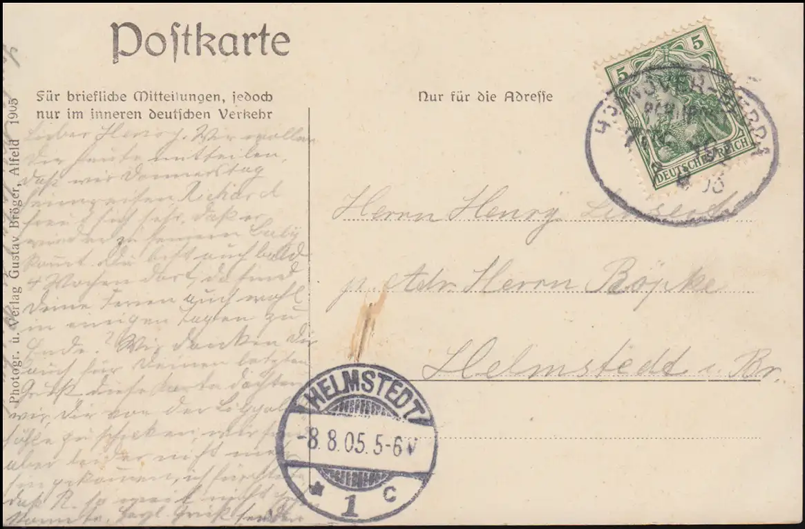 Poste ferroviaire HANNOVER-BEBRA 7.8.1905, grotte de Lippolds près d'Alfeld, vers HELMSTEDT