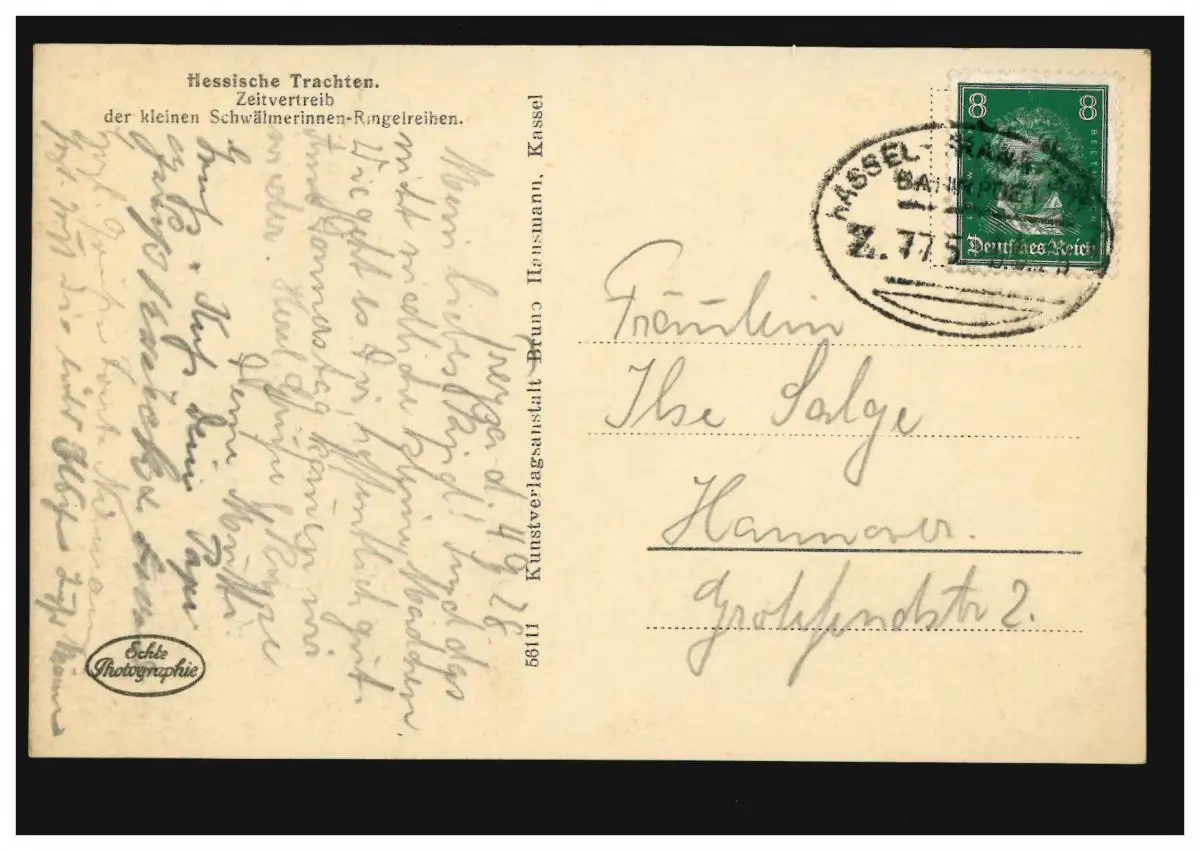 Poste ferroviaire KASSEL-FRANKFURT ZUG 775 - 6.9.1926 sur AK Hessische enfants dans les costumes