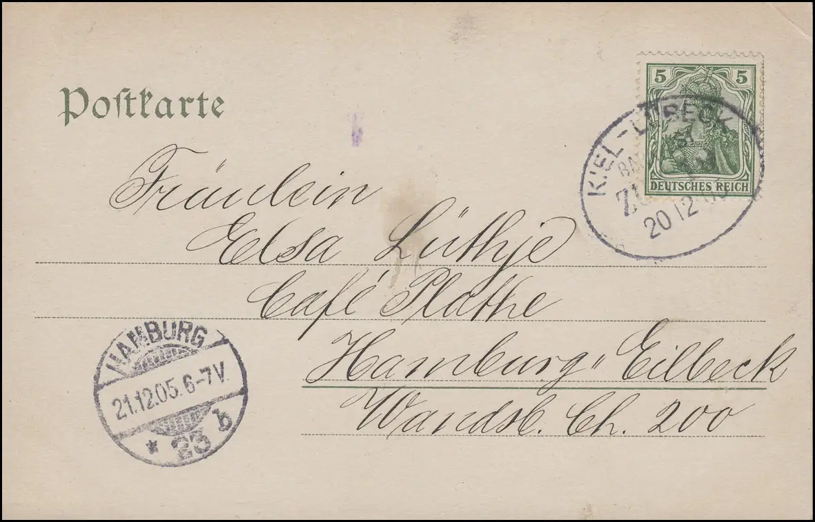 Poste ferroviaire KIEL - LÜBECK ZUG 19 - 20.12.05 sur AK Plön EF 5 Pf après Hambourg 21.12.