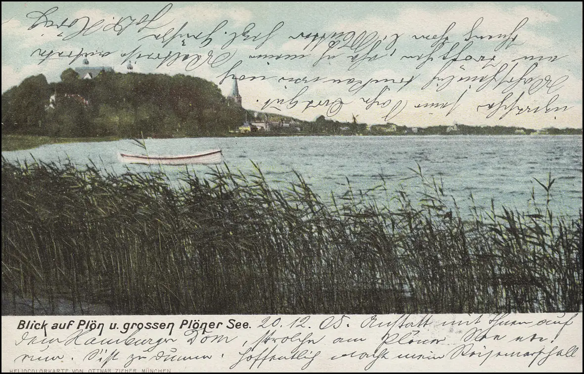 Carte visuelle "Vue sur Plön et grand lac Plooner" avec courrier ferroviaire à Hambourg. Examen: original Numéro d'article: 00000000020492