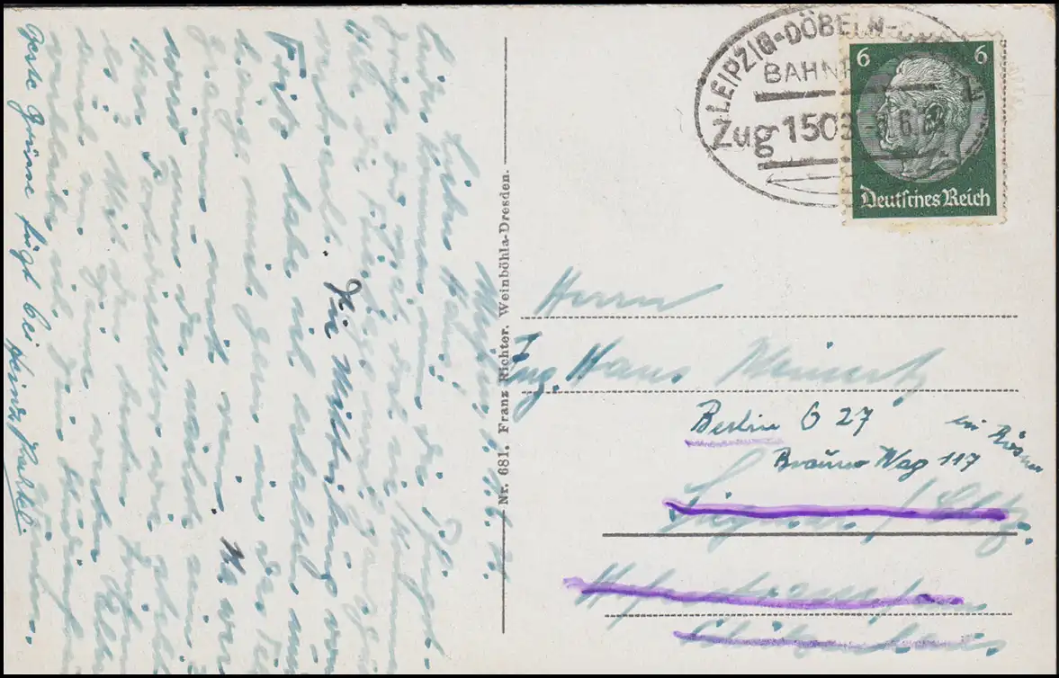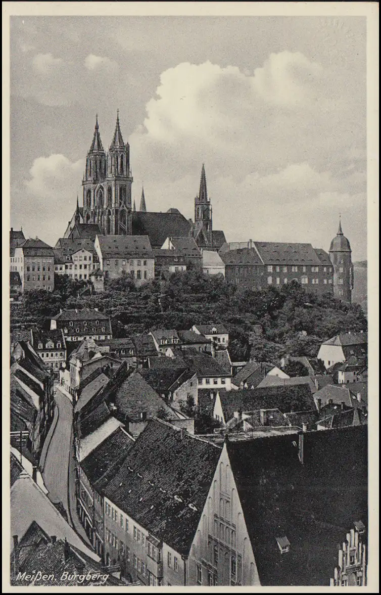 Poste ferroviaire LEIPZIG-DÖBELN-DRESDE ZUG 1503 - 3.6.1931 sur AK Meisssen Burgberg