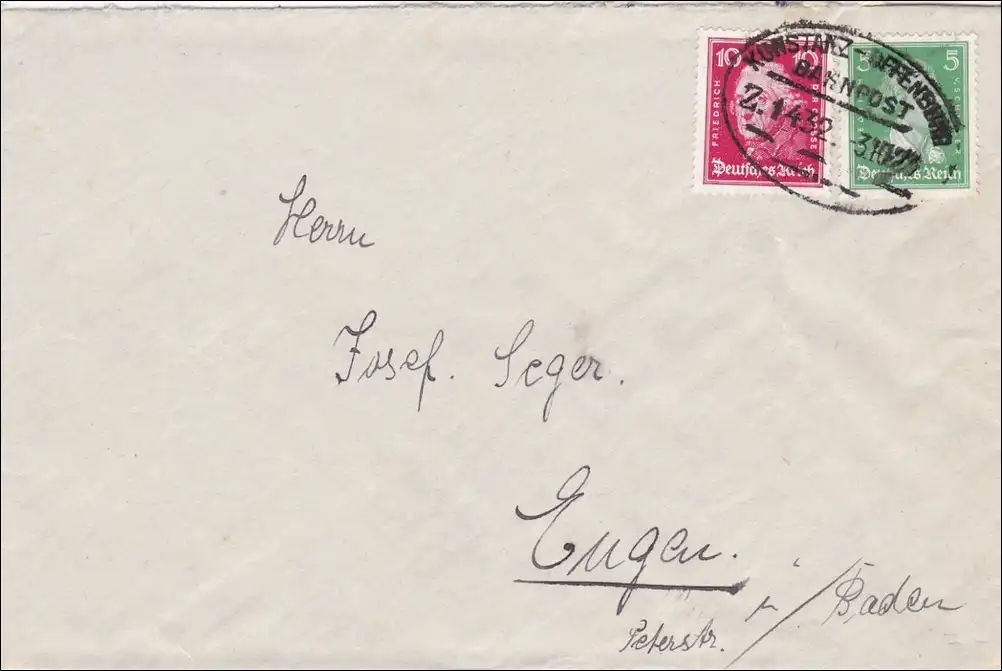 Poste ferroviaire: Lettre d'Immendingen avec le cachet de la gare Konstance-Offenburg 1929