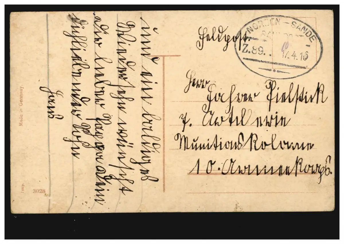 Poste ferroviaire NORDEN-SANDE ZUG 89 - 17.4.1916 Poste de terrain sur AK Félicitations anniversaire