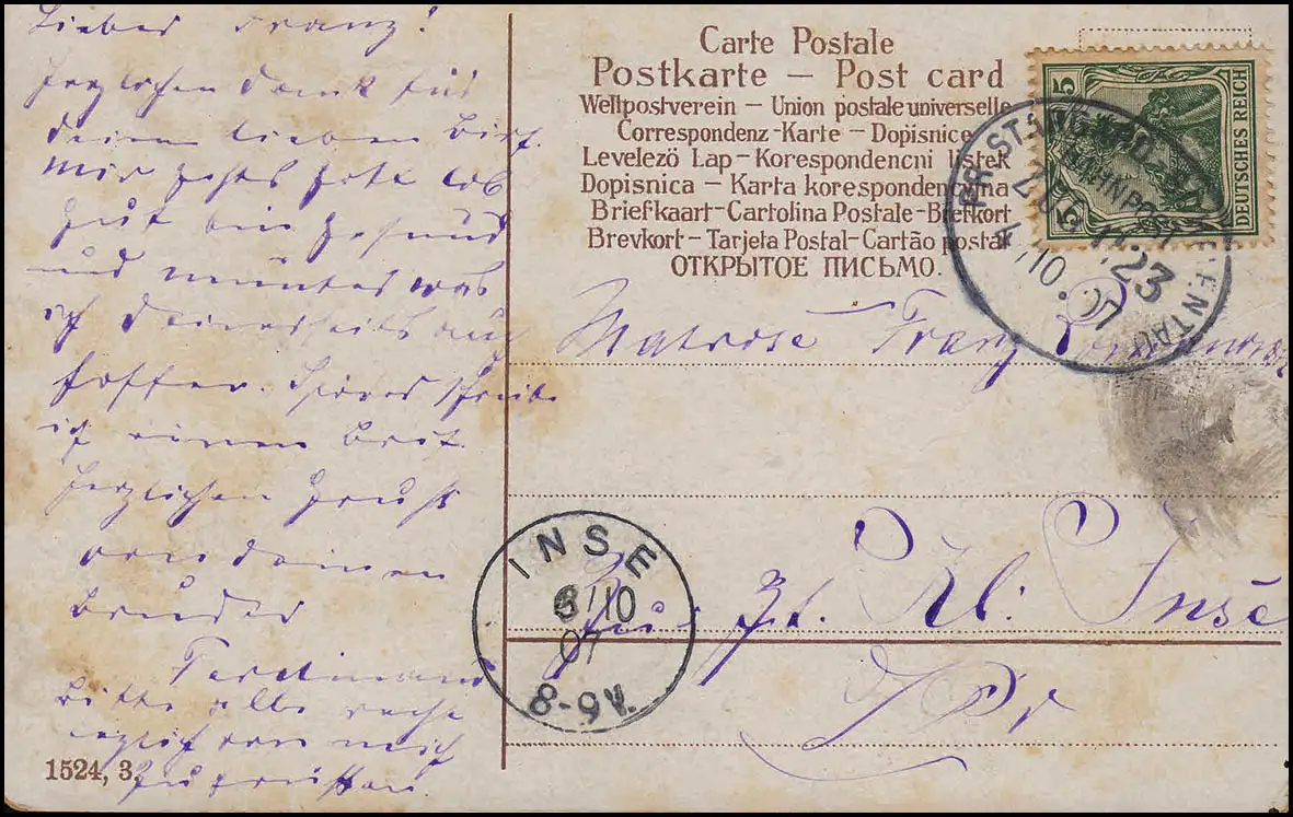 Poste ferroviaire "PR. STARGARD - ... 4.10.107" sur AK Femme avec voile vers INSE 6.10.