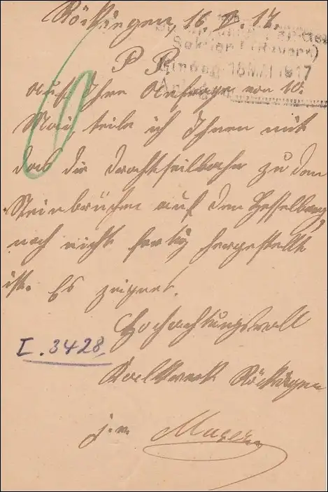 Poste ferroviaire: entier avec le cachet du poste ferroviaire vers Nuremberg 1917