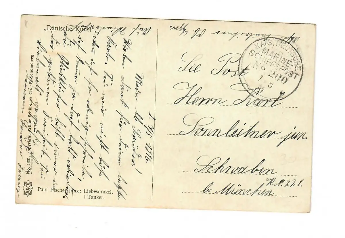 Poste maritime no 200, 1916 sur carte de visite Art danois, femme sur banque