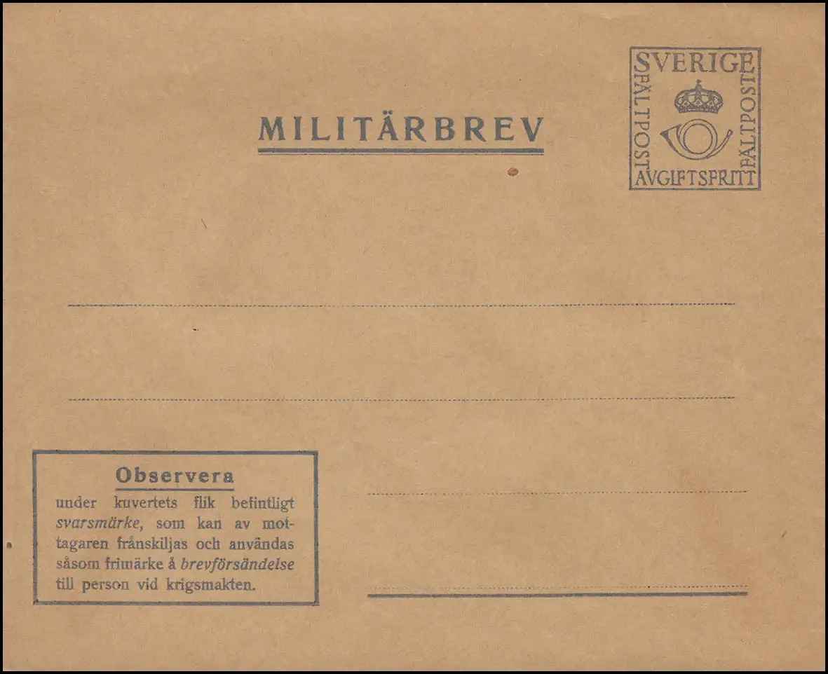 Poste militaire BRETEUR MILITAIRE FÄLTPOST Pression Observatoire, ** post-fraîchissement