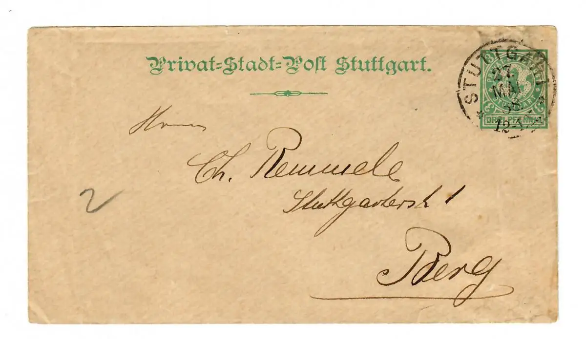 Poste municipal privé Stuttgart 1888, couverture complète de marchandises
