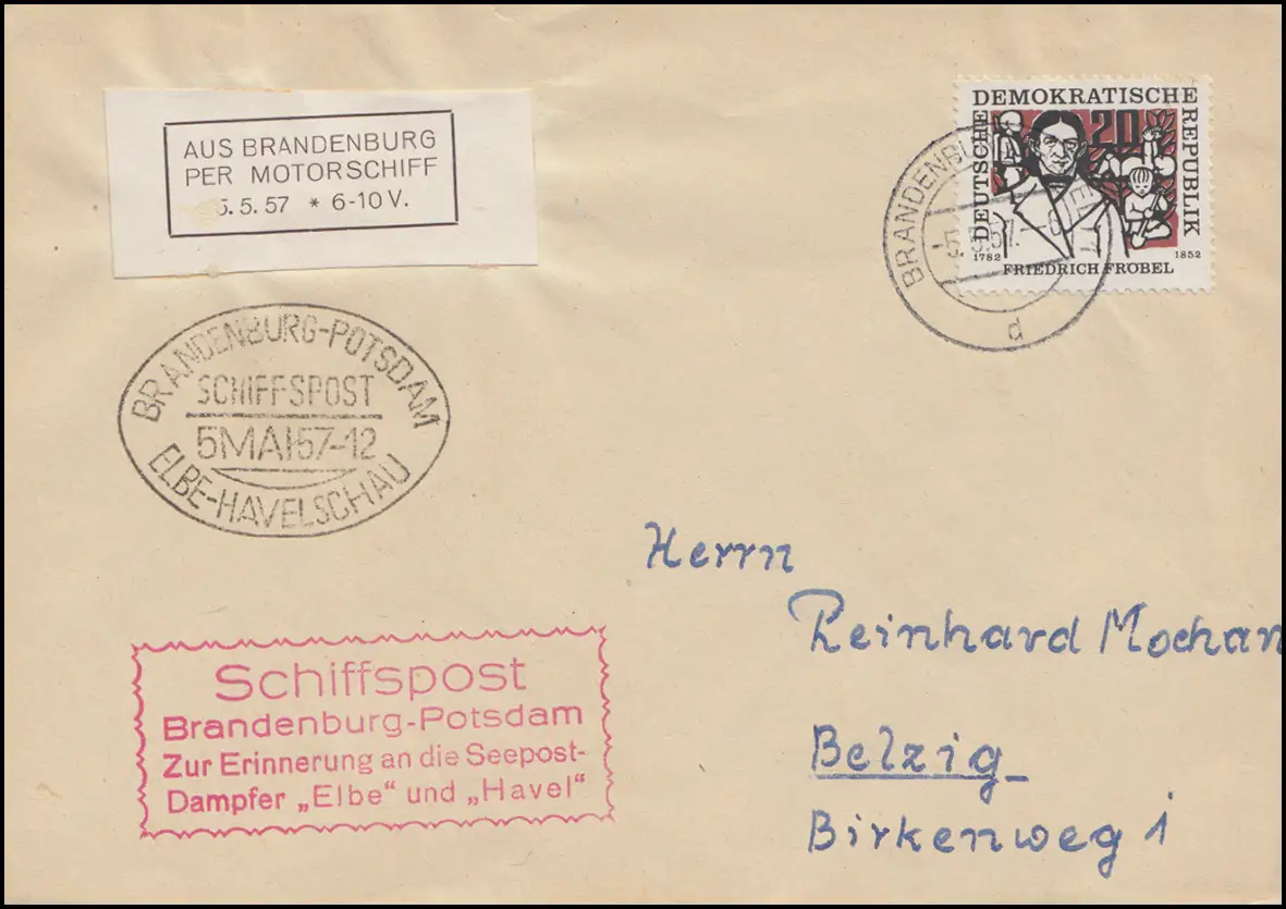 Poste naval Brandenburg-Potsdam par bateau-moteur BRANDENBURG / HAVEL 5.5.1957