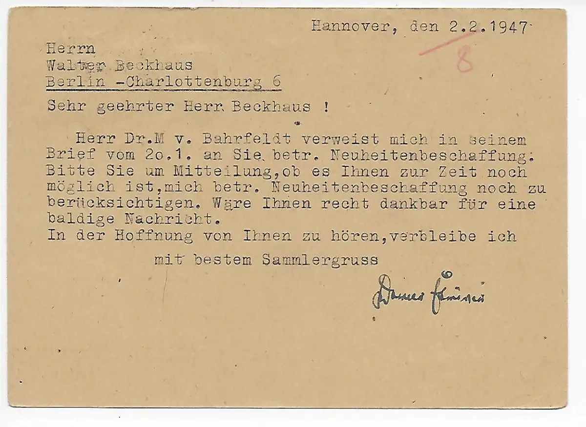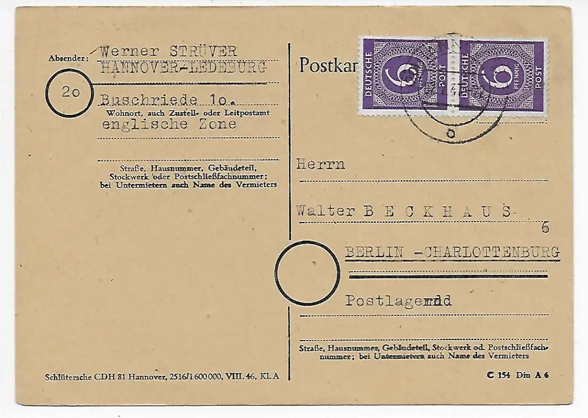 Carte postale Buschriede vers Berlin 1947