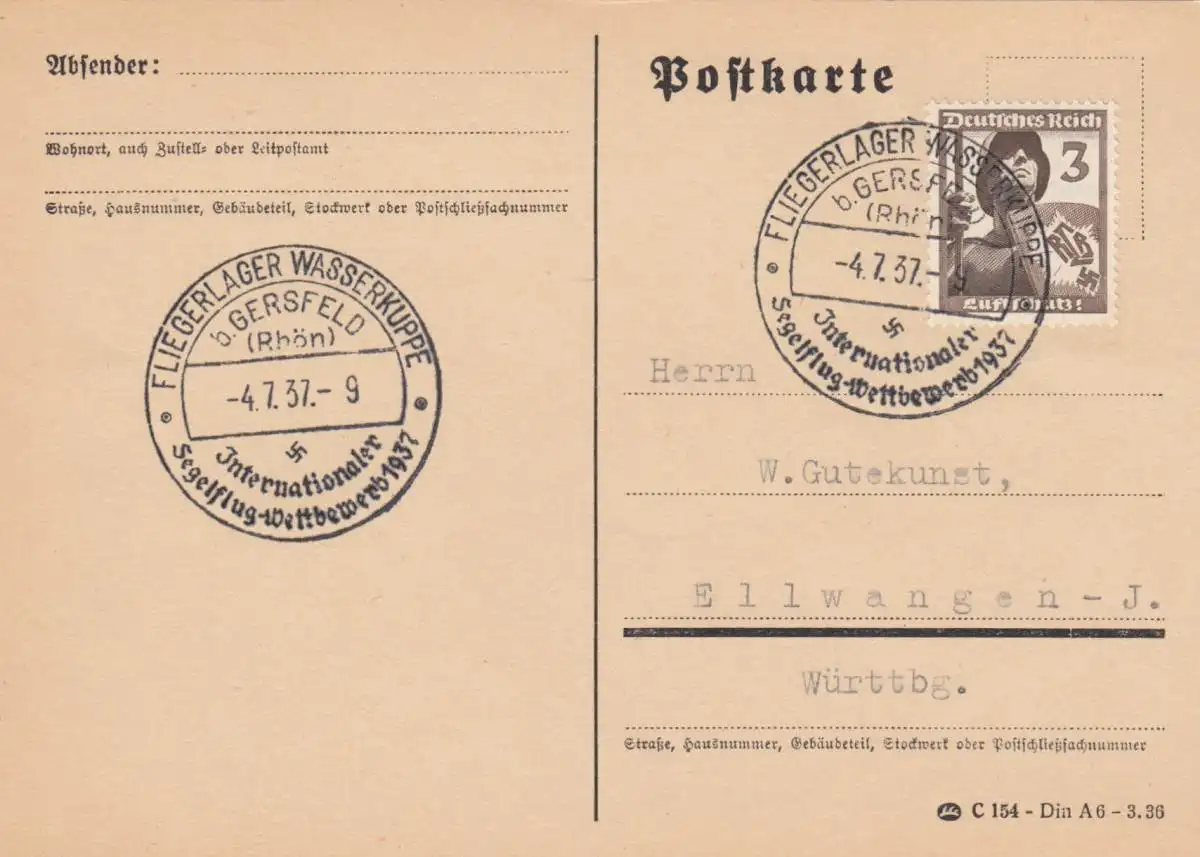 Carte postale Camps d'avion à Gersfeld, concours de vol à voile 1937, hydratante