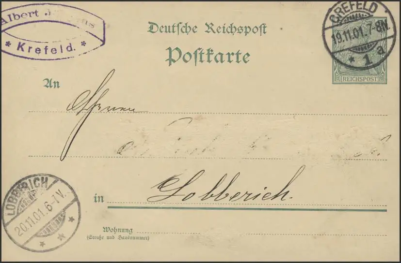 Crefeld / Krefield 19.11.1901 après Lobberrich 20.11.1901; maintien des besoins/adresse effacée Vérification: original Numéro d'article: 00000000016321