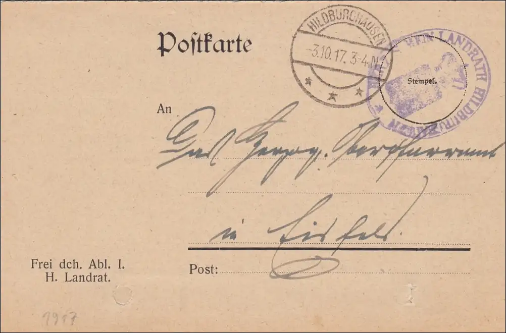 Carte postale Hildburghausen 1917 vers Eisfeld