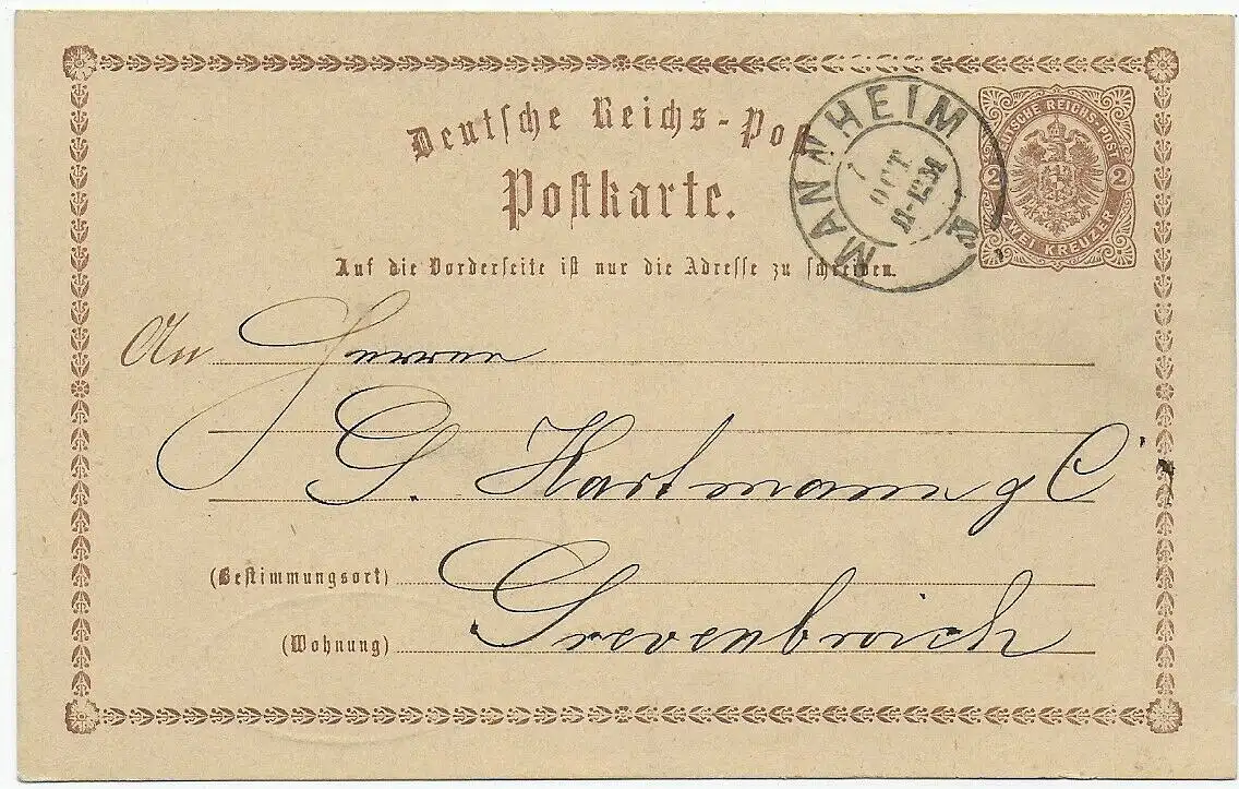 Carte postale Mannheim vers Grevenbroich, Baden Tampon