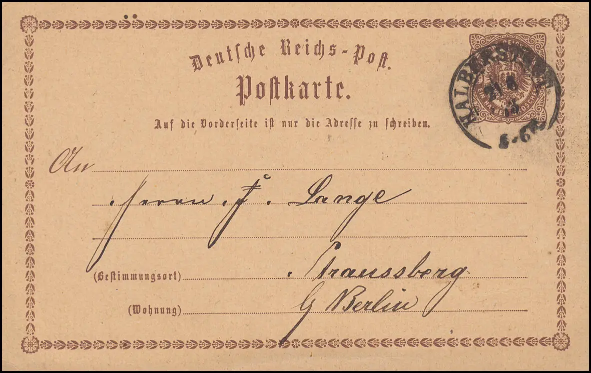 Carte postale P 1 Adler 1/2 Gr. Encerclement HEMIERVILLE 21.6.1873 n. Strausberg/Berlin