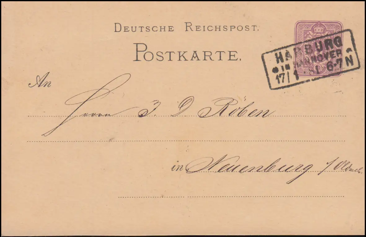 Carte postale P 10, paragraphe 5 Pfennig, R3 HARBURG, HANNOVER 17.1.1881 vers Neuchâtel