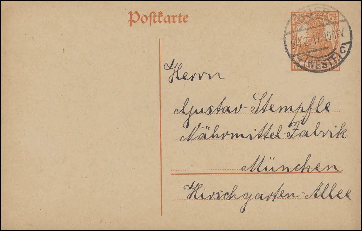 Carte postale P 110I Germania 7 1/2 p. de BUER (WESTF.) 20.2.1917 à Munich