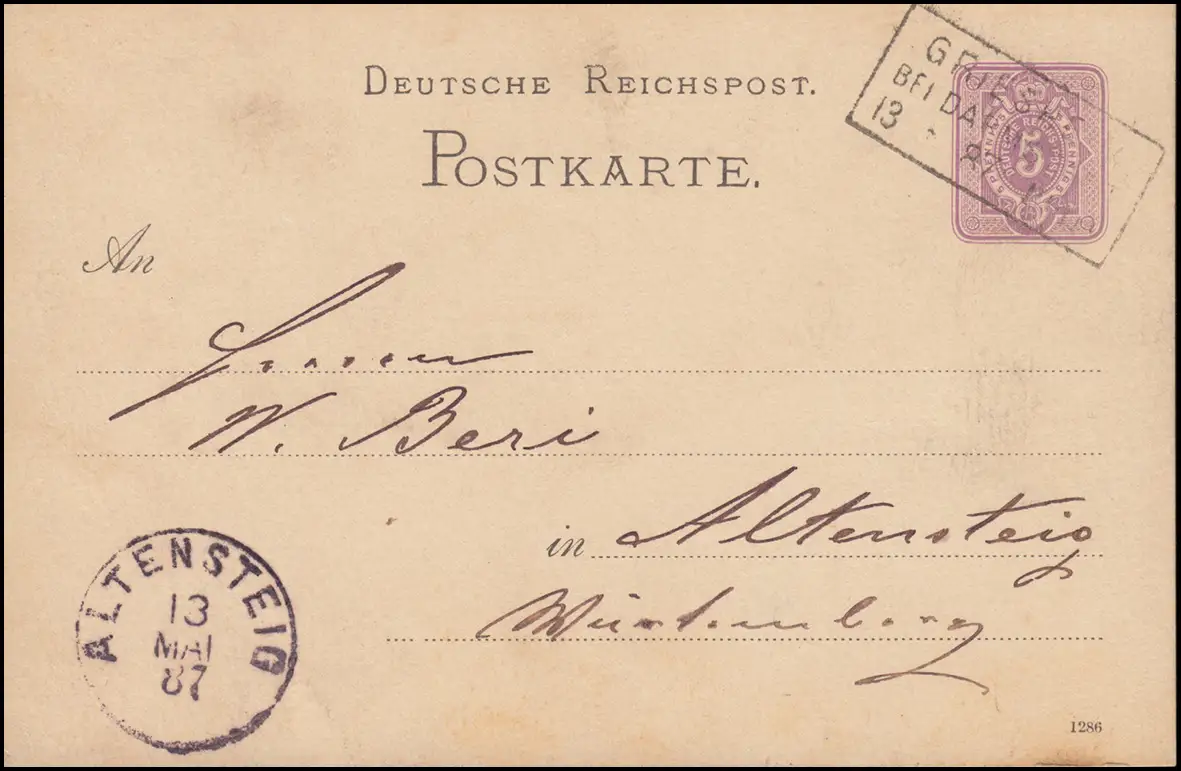 Carte postale P 12/01A paragraphe 5 Pf DV 1286 de GRIESHEIM ÁPRIST 13.5.1887