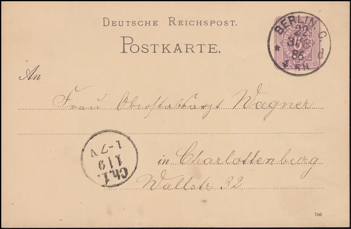 Carte postale P 12/02B, paragraphe 5 Pfennig DV 786, BERLIN 31.8.86 vers Charlottenburg
