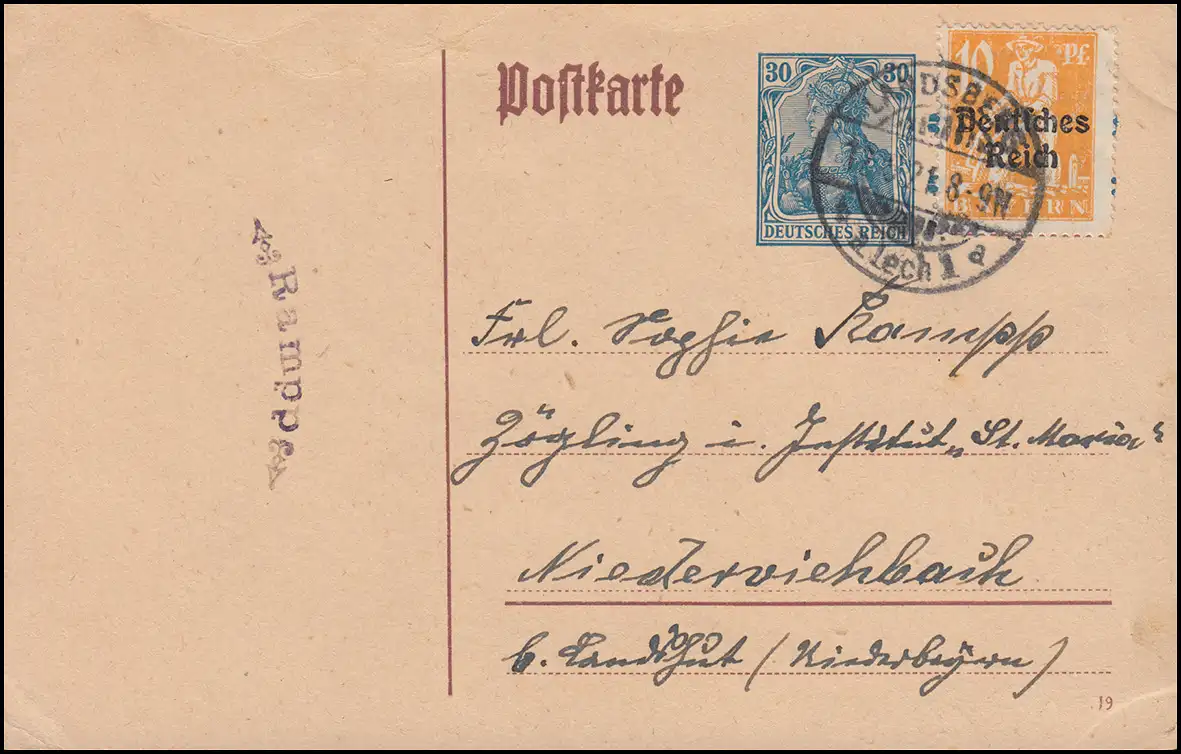 Utilisation comme carte postale à longue distance en mai 1921 au monastère de St. Maria à Niederbachbach. N° de catalogue: P133II/01 Examen: original Référence produit: 00000000027884>p>Note: Cet article n'est disponible qu'une seule fois. Vous recevrez exactement l'article représenté.