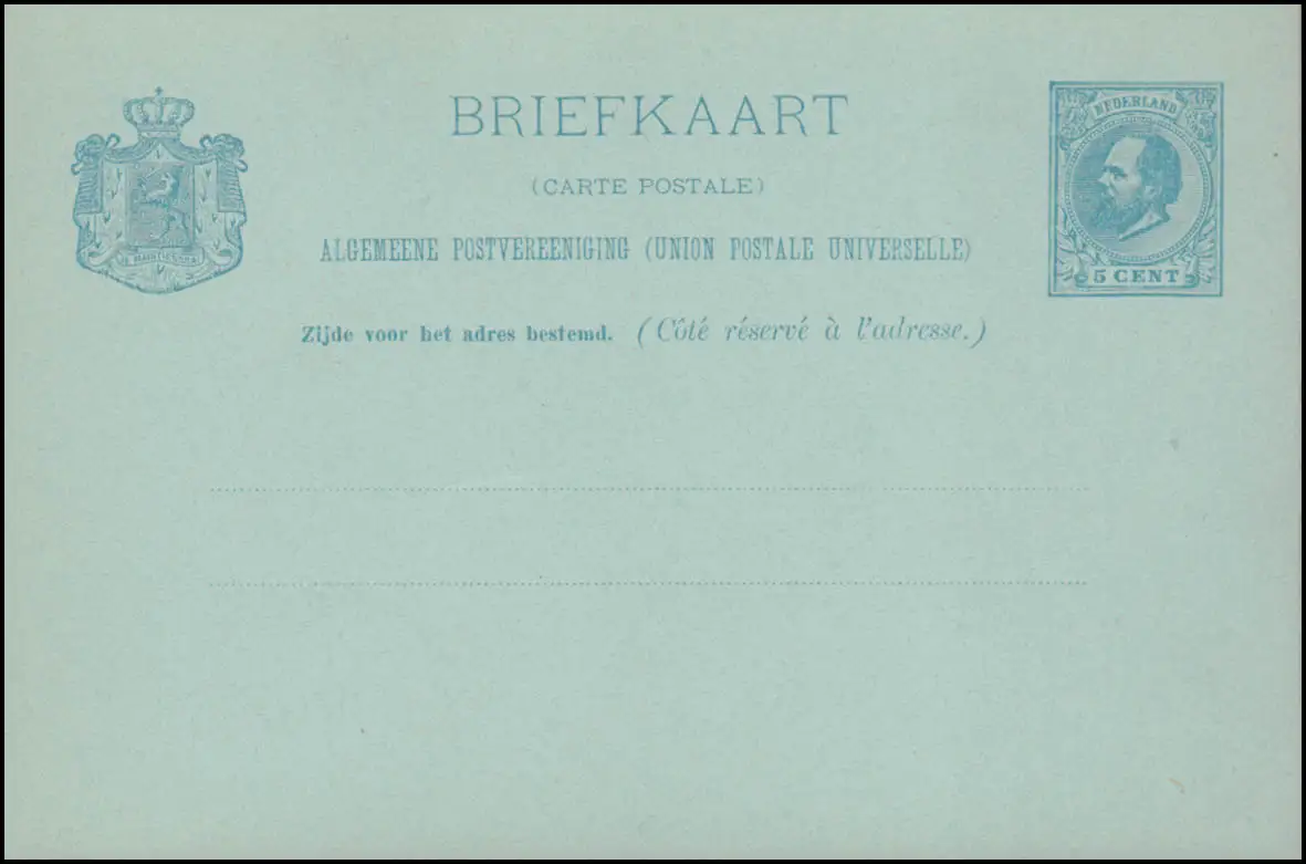 Carte postale P 16 Roi Guillaume 5 C. quatre lignes 1886 non utilisée ** / MNH