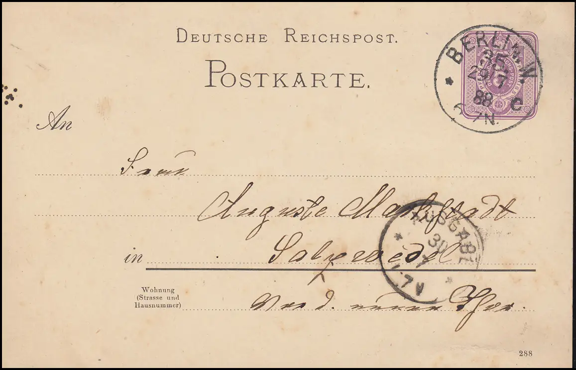 Carte postale P 18I, paragraphe 5 Pf. avec DV 288 de BERLIN 35 c - 29.7.88 vers Salzwedel