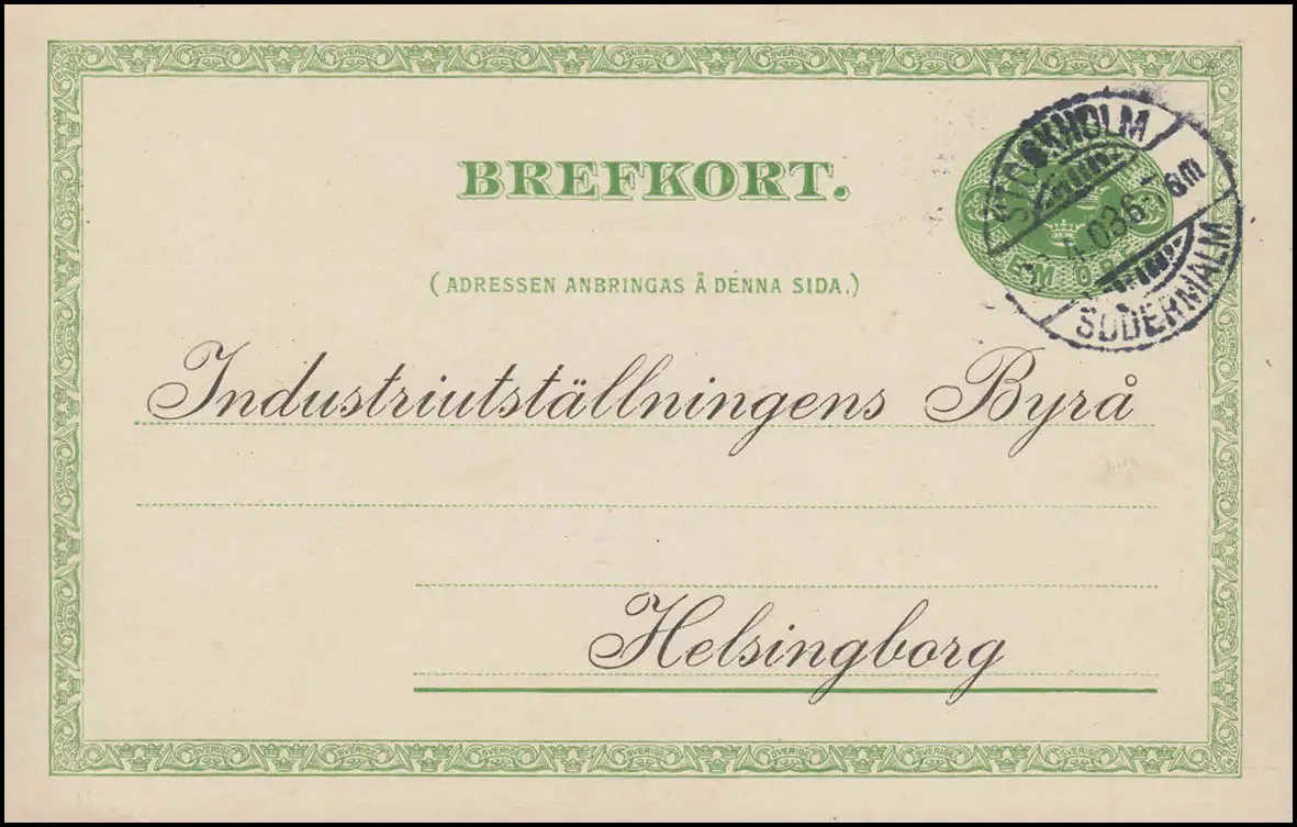 Carte postale P 19 BREFFORT 5 Öre, STOCKHOLM SODERMALM 22.4.2003 vers Helsingborg