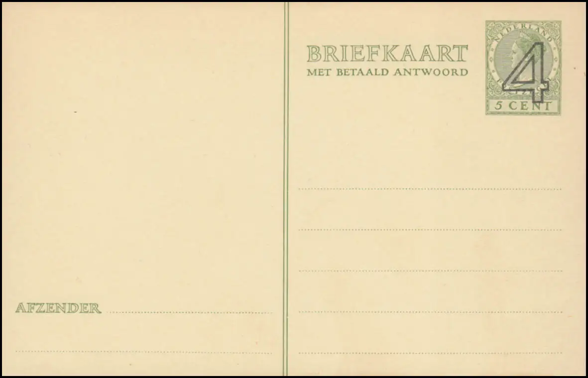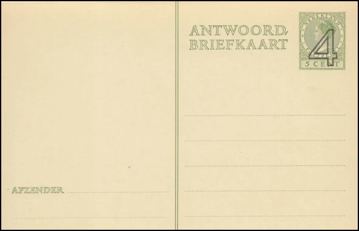 Carte postale P 209 Wilhelmina Carte double 4 à 5 cents vert, non utilisé ** / MNH