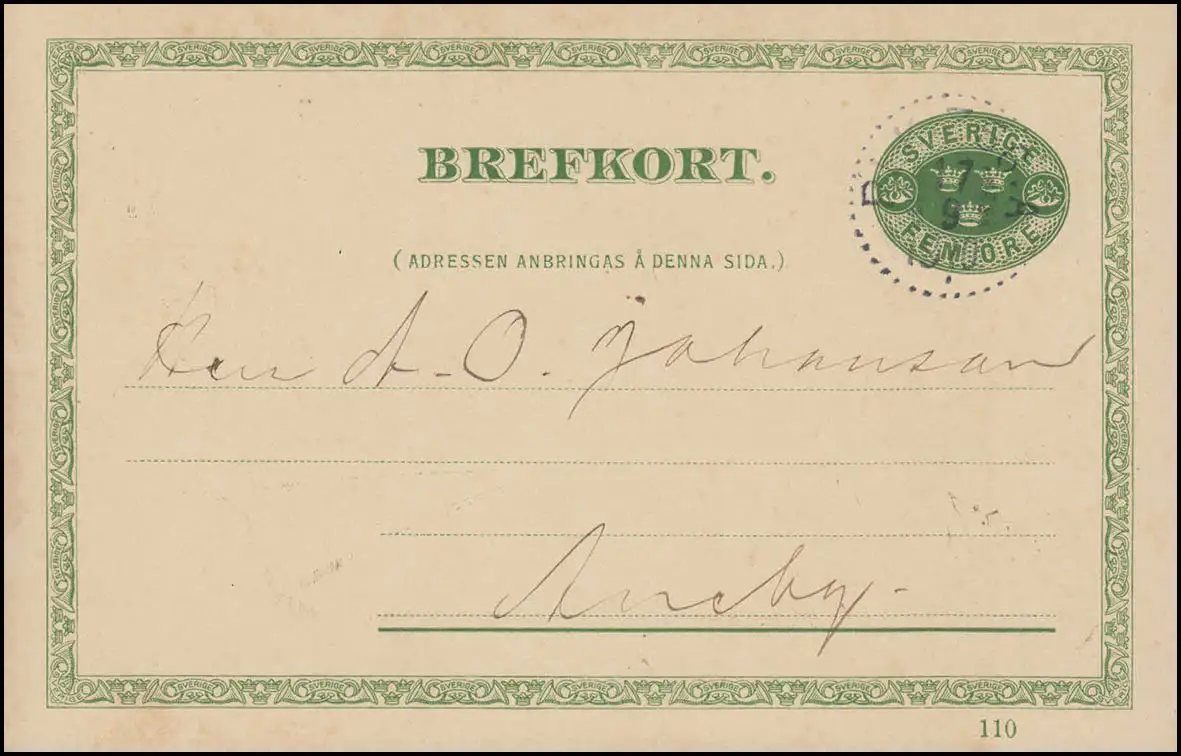 Carte postale P 24 BREFKORT 5 Öre Date d'impression 110, de Tranas 17.9.1910 à Aneby