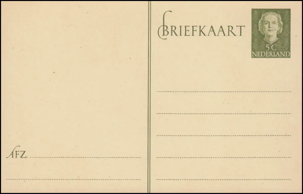 Carte postale P 245 Reine Juliane 5 cents, non utilisée ** / MNH