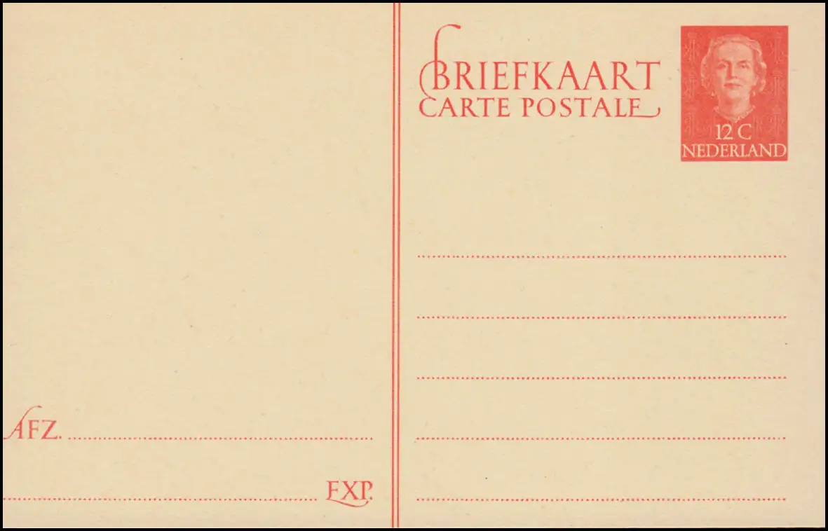 Carte postale P 248 Reine Juliane 12 cents orange rouge, non utilisé ** / MNH