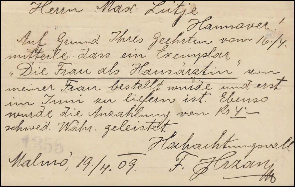 Carte postale P 25 SVERIGE-SUEDE avec DV 907, MALMÖ 19.4.1909 vers Hanovre