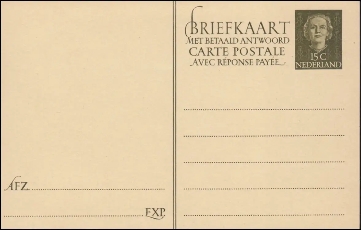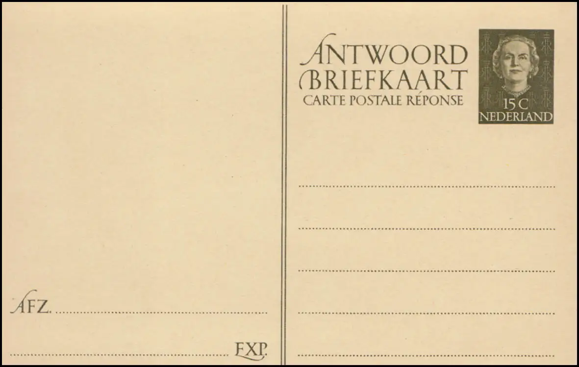 Carte postale P 256 Reine Juliane Carte double 15 cents, non utilisée ** / MNH