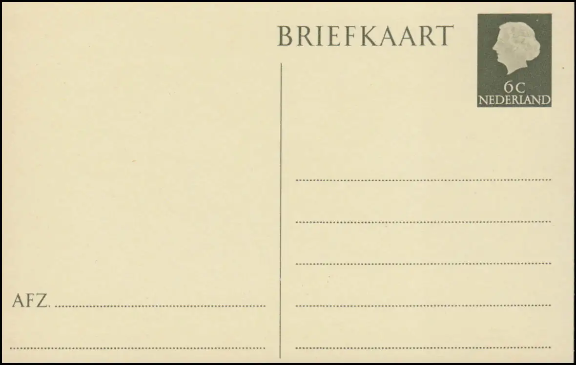 Carte postale P 257 Reine Juliane 6 cents, non utilisée ** / MNH