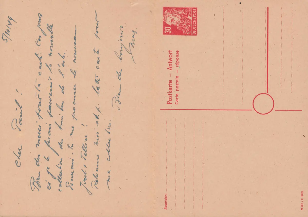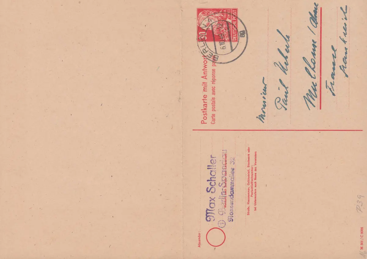 Carte postale P 39 Engels 30 Pf. DV M 301 / C 8088 Carte double BERLIN 6.10.1949