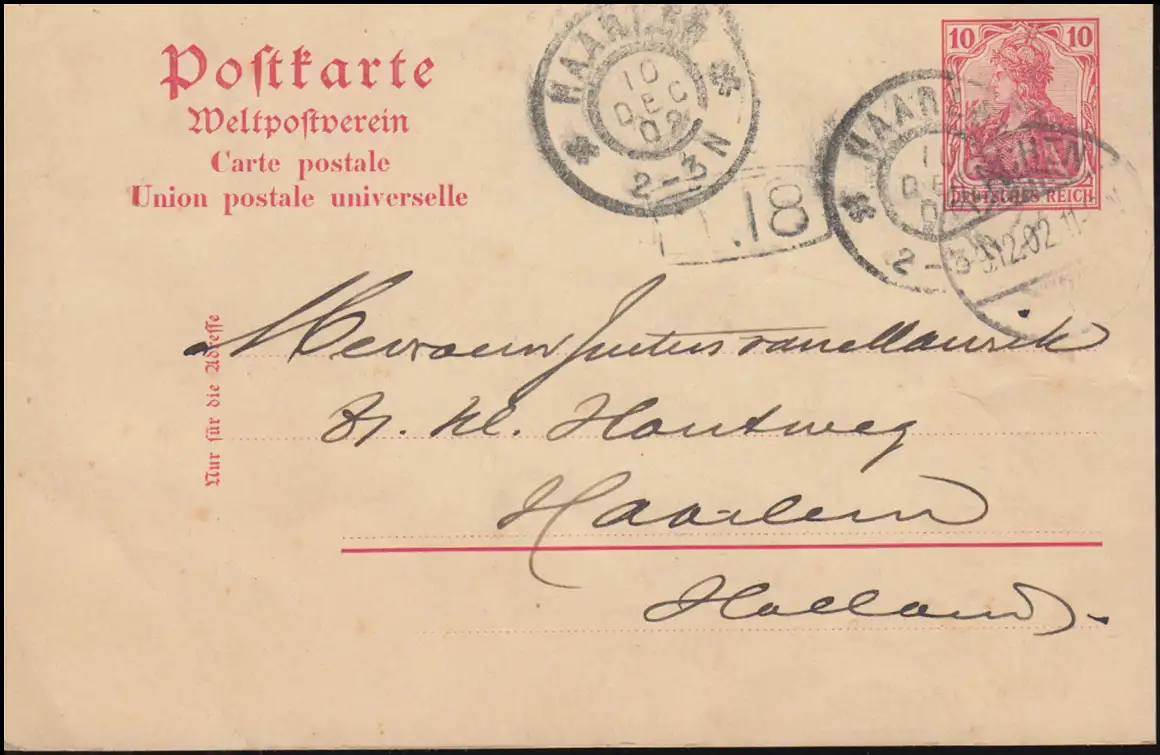 Carte postale P 59 de AACHEN 9.12.1902 aux Pays-Bas HAARLEM 10.12.02