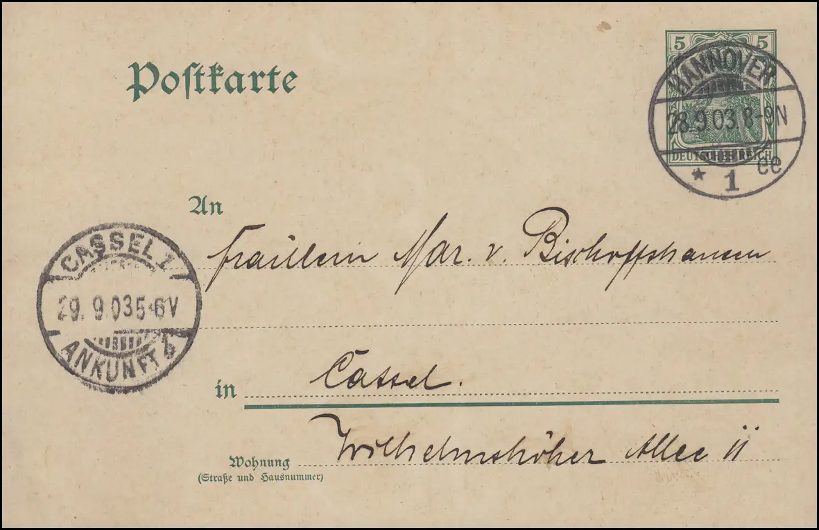 Carte postale P 64X Germania HANNOVER 1 ee - 28.9.03 vers CASSEL-ANK. 1 - 29.9.03